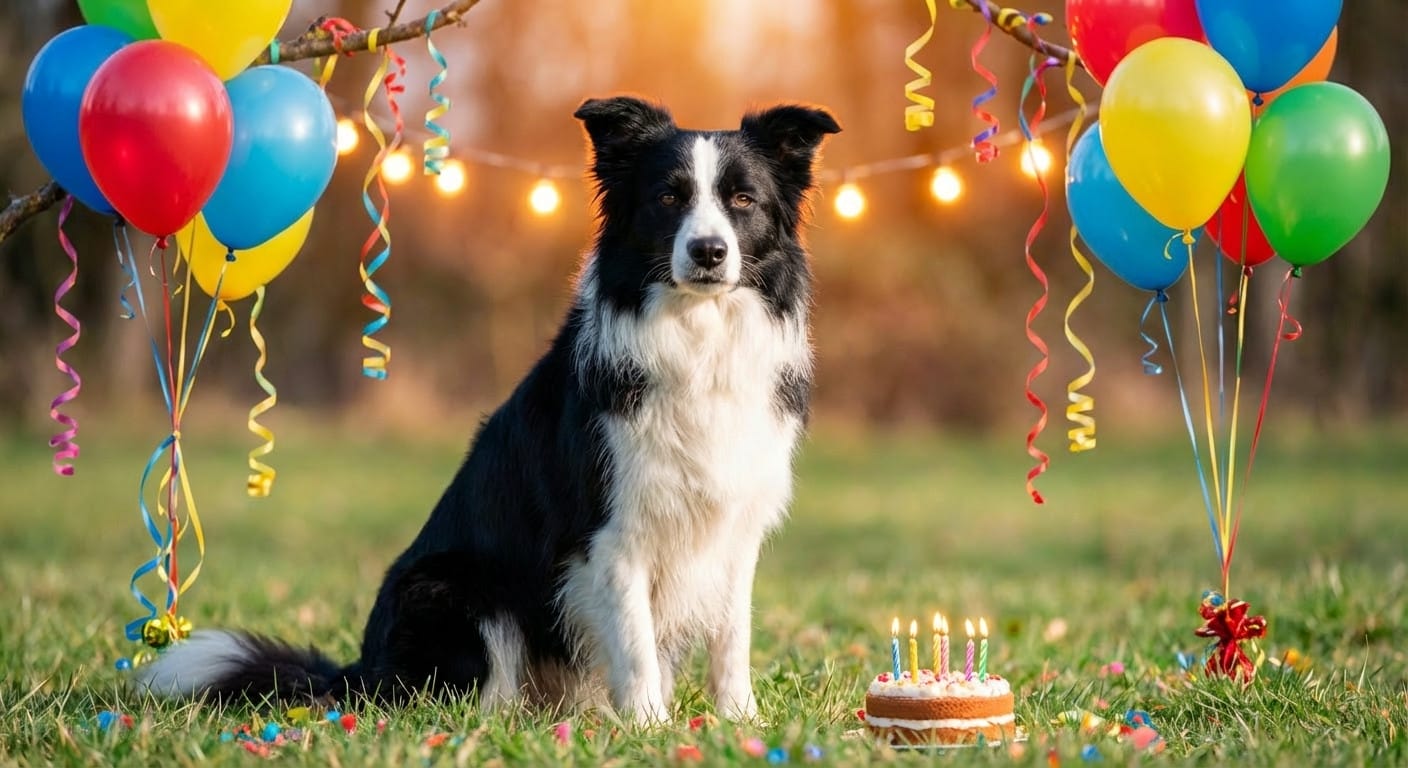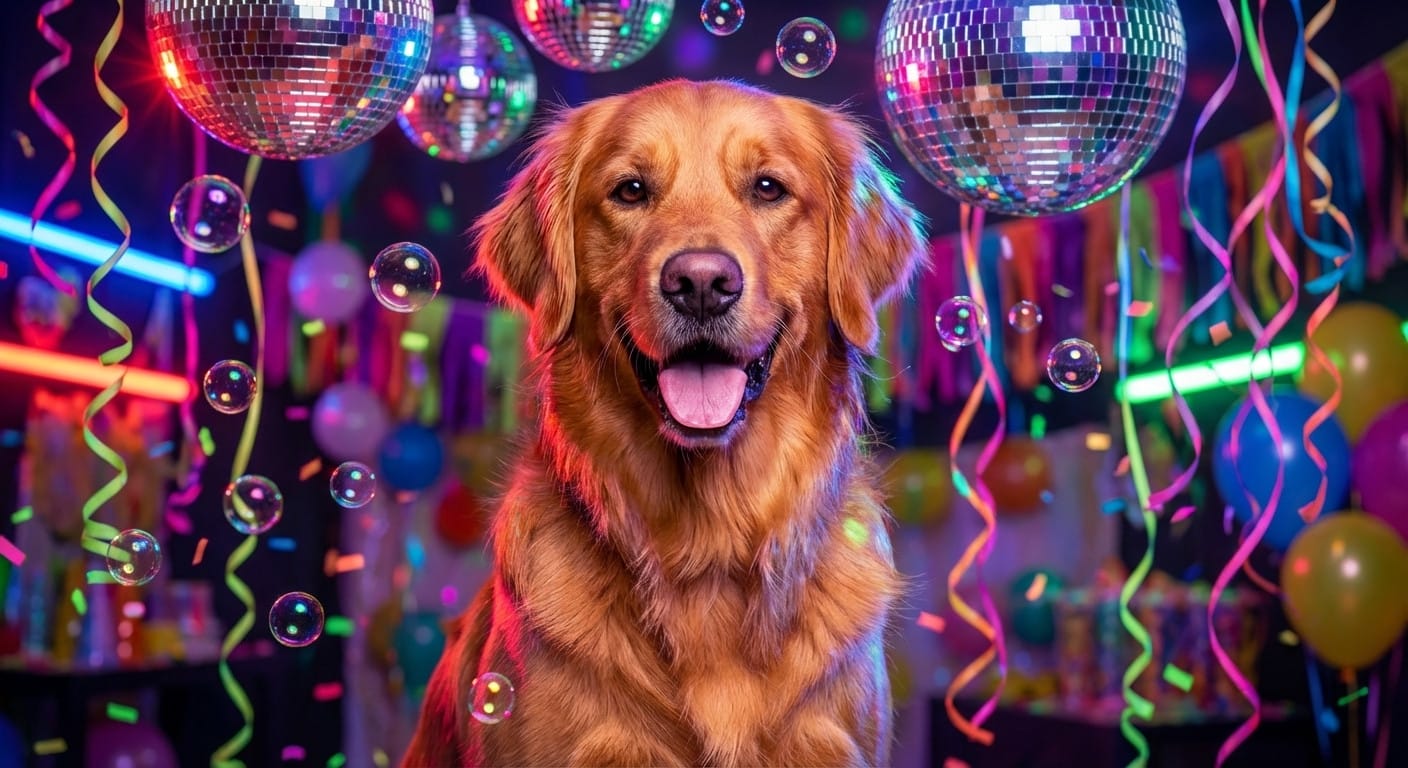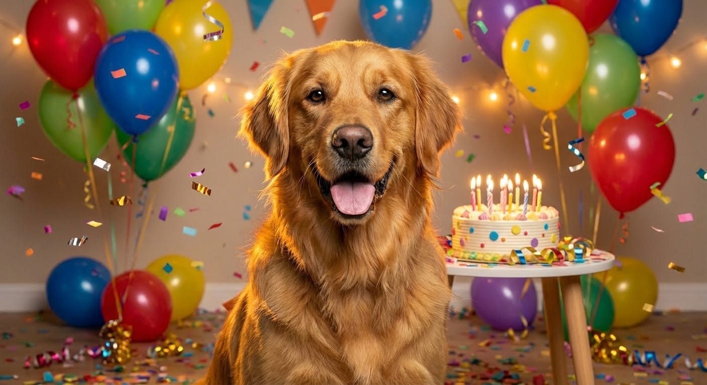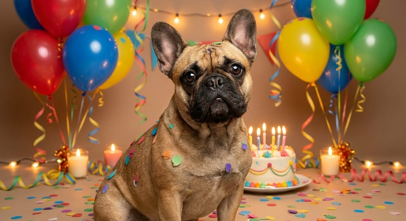 Style your pet's photo with party vibes, confetti, and birthday energy for their special day post.