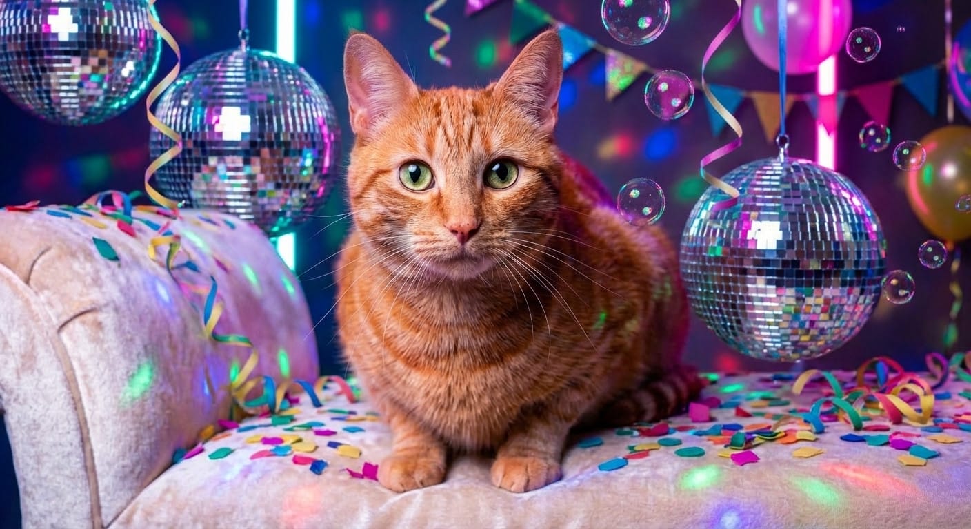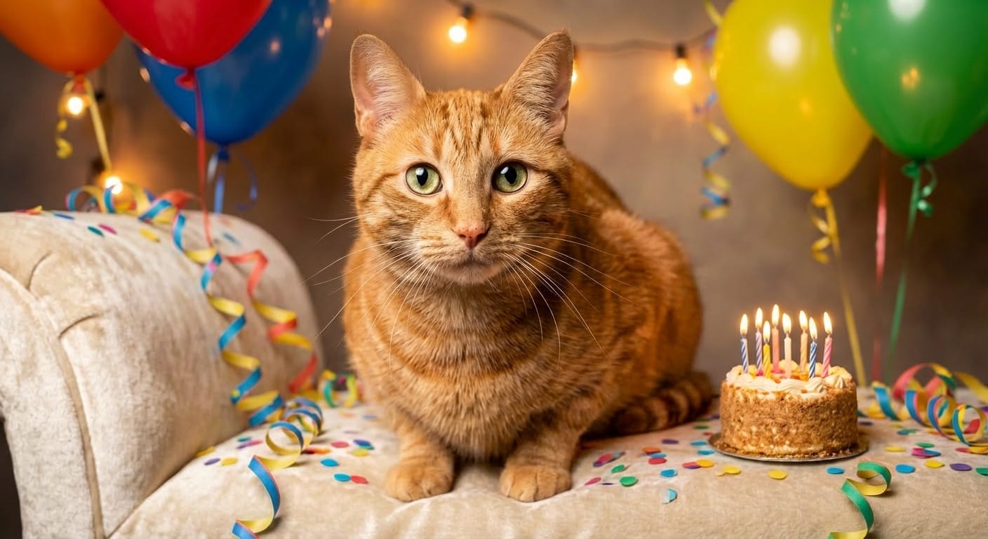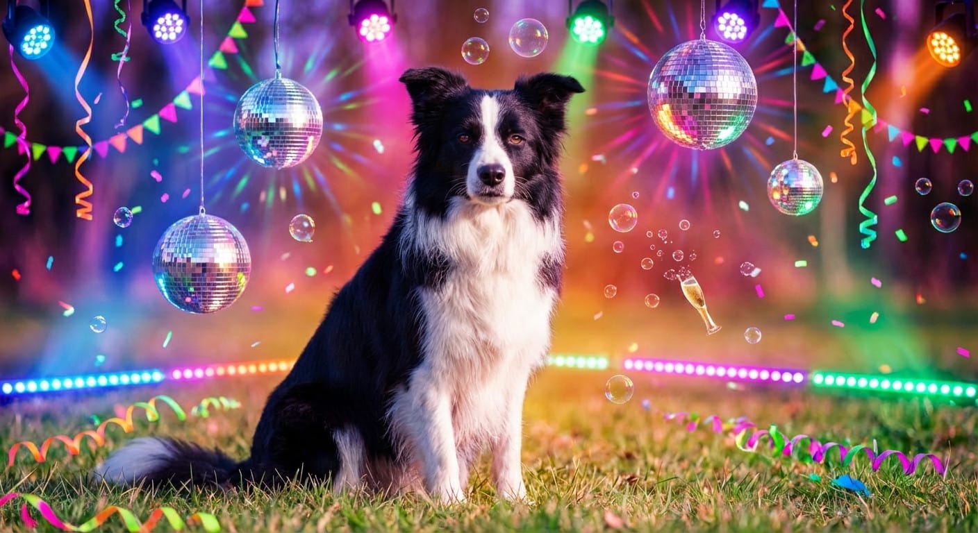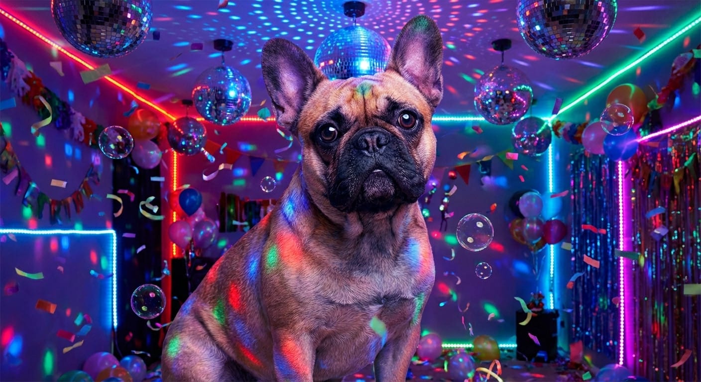 Style your pet's photo with party vibes, confetti, and birthday energy for their special day post.