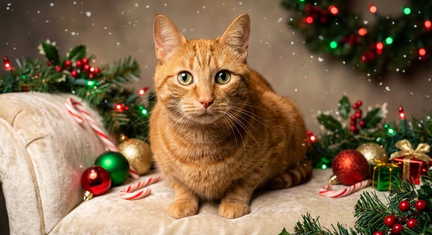 The AI changes the scene, lighting, and seasonal details but keeps your pet's face, fur, and personality perfectly intact.